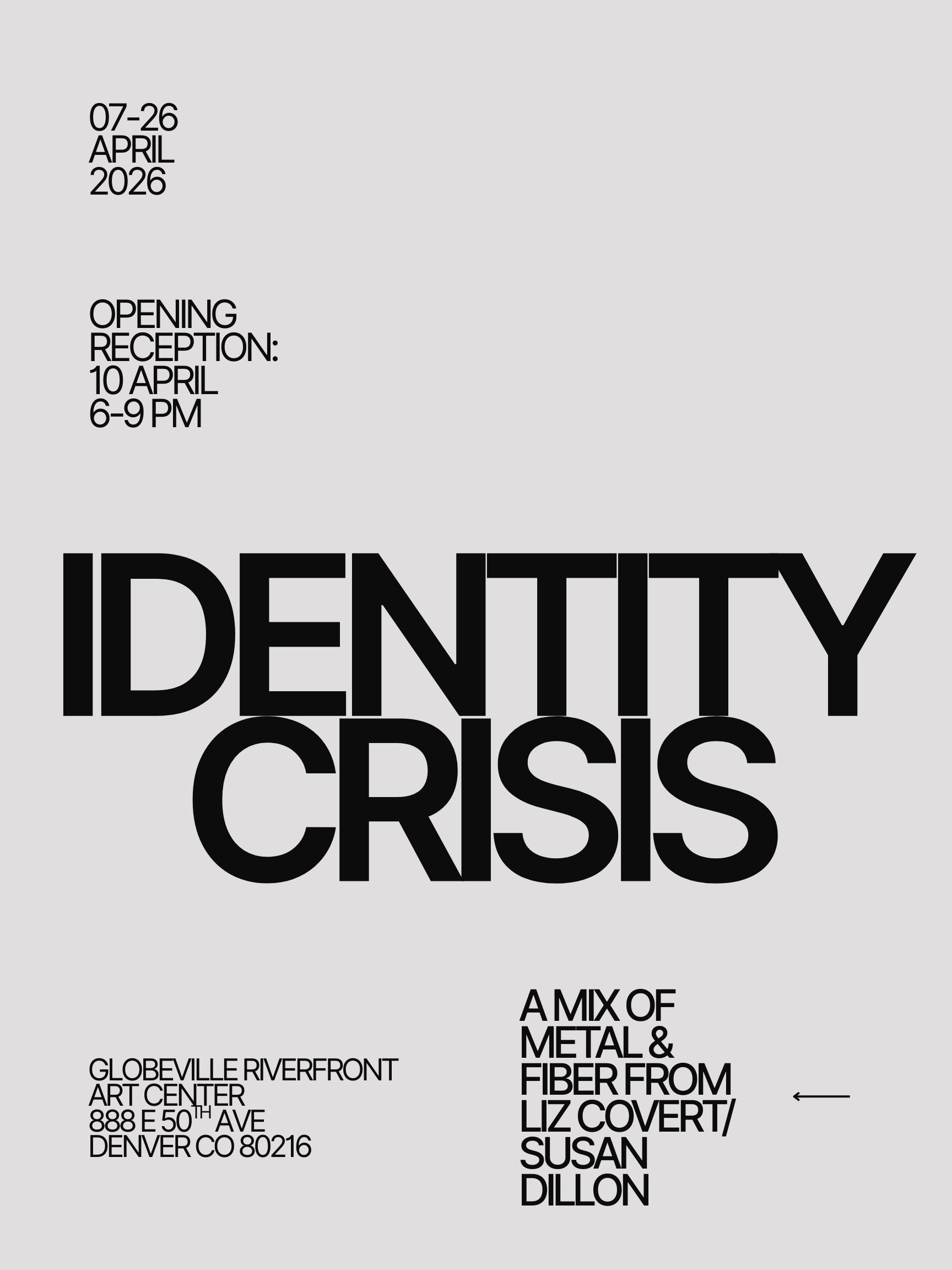 Join resident creatives Liz Covert & Susan Dillon for the opening reception of their duo show “Identity Crisis”. Featuring new works from both artists exploring metal & fiber. Show runs from April 10 – 26, the opening reception will be Friday, April 10 from 6:00 – 9:00. Both artists will be on hand… hope you can join them!